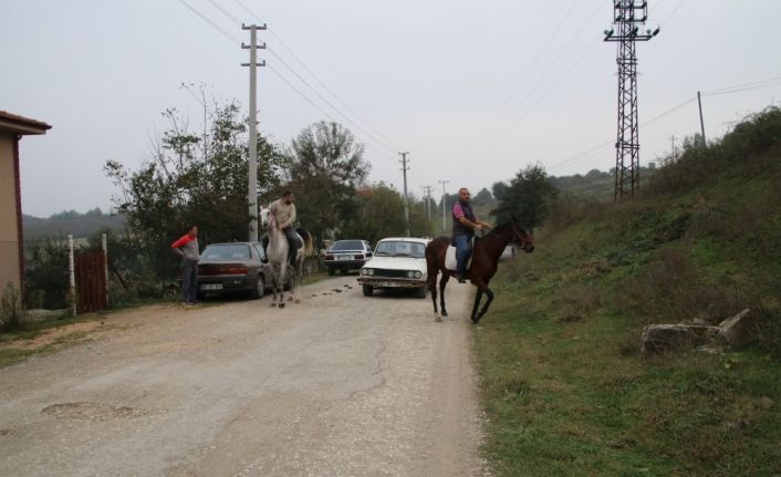 DÜZCE(İHA) – Düzce’nin Gümüşova ilçesine bağlı Elmacık köyünde bozuk yollardan dolayı arabalarına masraf etmekten bıkan köylüler köy içindeki ulaşımı atla çözdü.