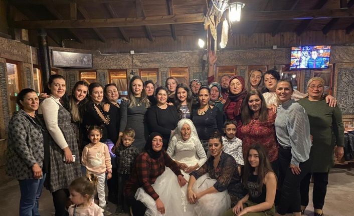 Aksu ilçesinde yaşayan 85 yaşındaki Döndü Metin, 1949 yılında İbrahim Metin ile evlendi. O günlerdeki zor koşullar ve maddi imkansızlık nedeniyle giyemediği gelinlik Döndü Metin’in içinde ukde kaldı. 70 yıldır beyaz gelinliğe özlem duyan Metin, bu isteğini bayan kuaförü torunu Tülay Sezmiş’e söyledi. Ölmeden tek isteğinin gelinlik giymek olduğunu söyleyen Metin’in isteğini torunu ve onun eşi Serhat Sezmiş gerçekleştirmek için harekete geçti. Sezmiş, ailesi önemli bir duyuru yapacaklarını söyleyerek tüm akrabalarını bir restoranda bir araya getirdi. Tülay Sezmiş, bu arada babaannesine beyaz gelinliğini giydirip, hazırlıklarını tamamladı. En büyük torunlarını kolunda salona giren 85 yaşındaki Metin, gelinlik özlemini 70 yıl sonra dindirdi. Çocukları ve torunlarıyla eğlenen Metin’in yıllar önceki anıları canlandı. Zaman zaman mikrofonu eline alıp türküler söyleyen Metin, mutlulukla hüznü bir arada yaşadı.