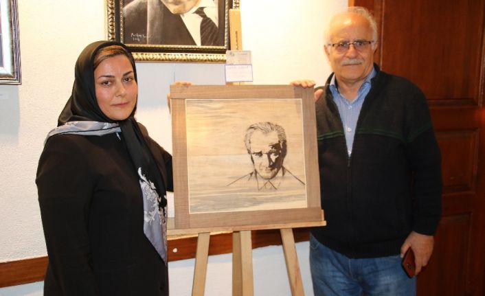 İran’da 30 yıldır sanatla ilgilenen minyatür sanatçısı Reza Zolghadr, minyatür ve ebru sanatını bir araya getirdiği Cumhuriyet temalı eserinde at üzerinde genç bir çocuğu ve Atatürk’ün portresini çizdi. Eşi Mehri Rabiie ise, ahşap kakma sanatıyla farklı ağaçlar kullanarak Atatürk portresi yaptı. Sergiyi gezenler, İranlı çift tarafından hazırlanan eserleri büyük bir beğeni ile inceledi.