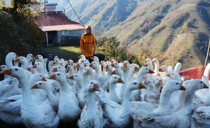 Ordu’nun Kabadüz ilçesinde üniversite mezunu bir genç kız, kaz yetiştiriciliği işine başladı.
