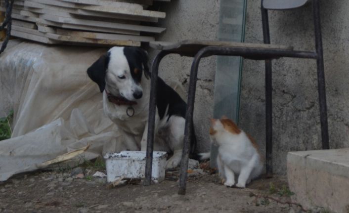 Samsun’da 1 yaşındaki Kopi isimli köpek, yavru kediye annelik yapıyor.