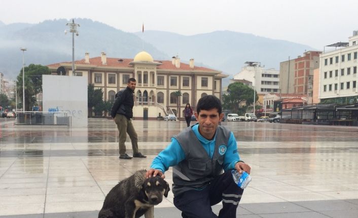 Manisa’da bir belediyede görev yapan temizlik çalışanı ile sokak köpeğinin dostluğu görenleri kıskandırıyor. İşi gereği sürekli sokaklarda olan Murat Emen, herkesin sokak hayvanlarına sahip çıkmasını istedi.