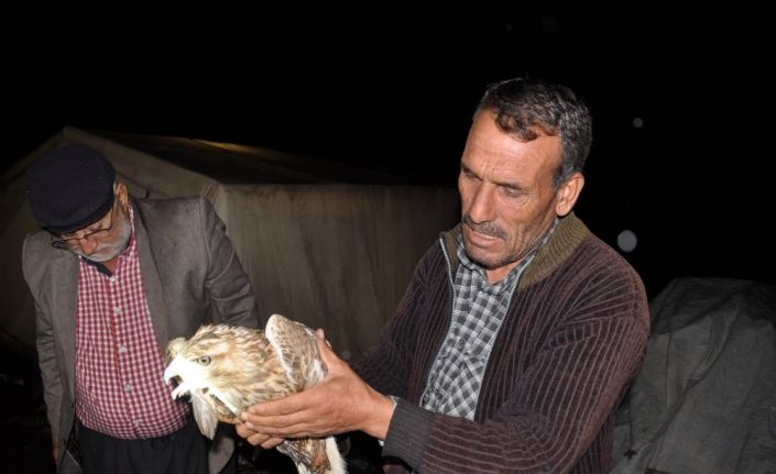 Gaziantep’in İslahiye ilçesinde biber tarlasında çalışan işçiler tarafından tüfekle vurulduğu tahmin edilen yaralı şahin bulundu.