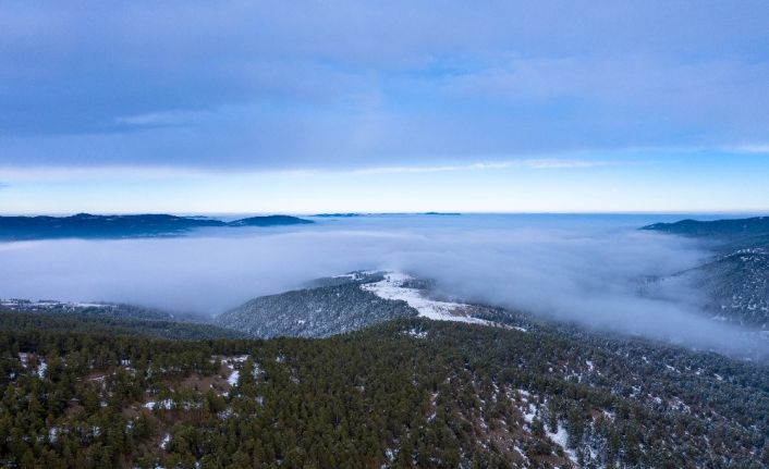 Yozgat’ın Akdağmadeni ilçesinde geniş bir alanı kapsayan Akdağmadeni ormanlarında etkili olan sis ve kar, doğanın yeşil örtüsü ile birleşince ortaya eşsiz bir manzara çıktı.