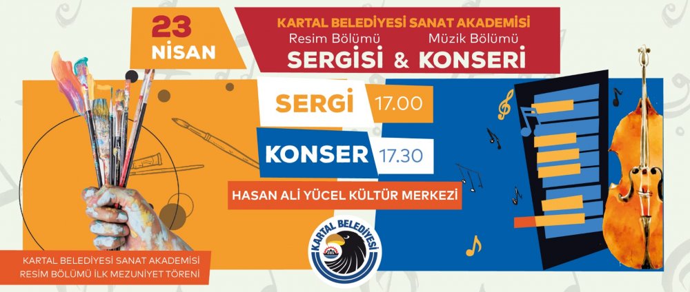 Kartal Belediyesi 23 Nisan Ulusal Egemenlik ve Çocuk Bayramı kutlamaları, Sanat Akademisi öğrencileri tarafından da büyük bir coşkuyla kutlanacak. Sanat Akademisi Resim Bölümü’nün ilk öğrencileri hem eserlerini sergileyecek hem de mezuniyet töreni coşkusunu bir arada yaşayacak. Kartal Hasan Ali Yücel Kültür Merkezi’nde yapılacak olan etkinlikler kapsamında Sanat Akademisi Müzik Bölümü öğrencileri de bir konser verecek. Kartal Belediye Başkanı Gökhan Yüksel’in öncülüğünde çalışmalarını sürdüren Kartal Belediyesi Sanat Akademisi; eğitim vizyonu ve çalışmalarıyla sanat dallarında eğitim gören öğrencilerini ulusal ve uluslararası alanda yetiştirip yönlendirmeye devam ederken ilk mezunlarını da verecek.
