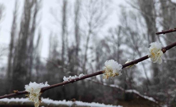 15 gün önce çiçek açan erik ağaçları kar altında kaldı