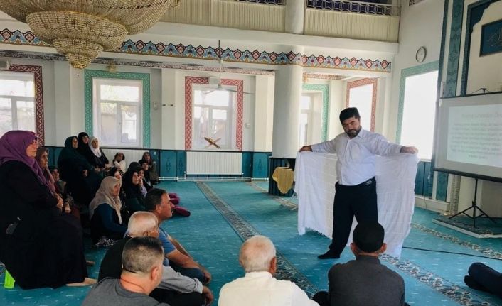 Akdağmadeni İlçe Müftüsü Abdullah Çolak tarafından gerçekleştirilen eğitimde umrede gidilecek olan yerler, kalınacak mekanlar ve yapılması gereken ibadetler hakkında vatandaşlara bilgi verildi.