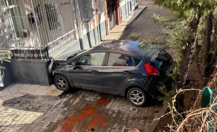 Yozgat’ta kontrolden çıkan otomobil, yaklaşık 2 metre yükseklikten apartman bahçesine düştü.
