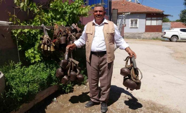 Yozgat’ın Sarıkaya ilçesinde besicilikle uğraşan Abdullah Eroğlu, küçükbaş hayvanların boyunlarına ses çıkarması için takılan ve tamamen el emeğiyle yapılan tongurdakların çocuk yaşlardan itibaren koleksiyonunu yapıyor.