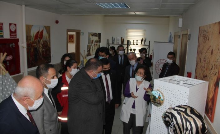 Yozgat’ta proje yürütücülüğünü Akdağmadeni Sosyal Hizmet Merkezi Müdürlüğü’nün proje ortaklığını ise Akdağmadeni Belediyesi ve Halk Eğitim Merkezi’nin yaptığı KOP SOGEP destekli “Kop İle Üretim Yap Renk Kat’’ projesinde kursiyerlerin çalışmaları sonucunda ortaya çıkan el emeği ürünler sergisi açıldı. İlçe Kaymakamı Mustafa Demir, Belediye Başkanı Nezih Yalçın, İlçe Milli Eğitim Müdürü Ersoy Ceylan ve İlçe Milli Eğitim Şube Müdürü Hidayet Ceylan çalışmaların yürütüldüğü atölyeyi ziyaret etti. Protokol projenin yürütücüsü Rüveyda Erten Özalp ve El Sanatları Öğretmeni Esma Çelik’ten bilgiler aldı.