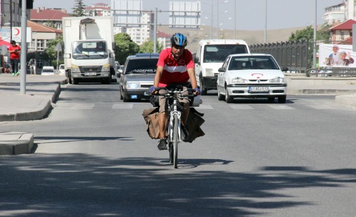 Edirne’den Kars’a pedal çevirmek için yola çıkan 50 yaşındaki bisiklet tutkunu Tevfik Saraç, bin 60 kilometre mesafenin ardından Yozgat’a ulaştı.