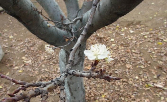 Aralık ayında kar yağışı beklenen kentte hava sıcaklıklarının mevsim normallerinin üzerinde seyretmesi sonucu güneşe aldanan bazı meyve ağaçları, tomurcuklanarak çiçek açtı.