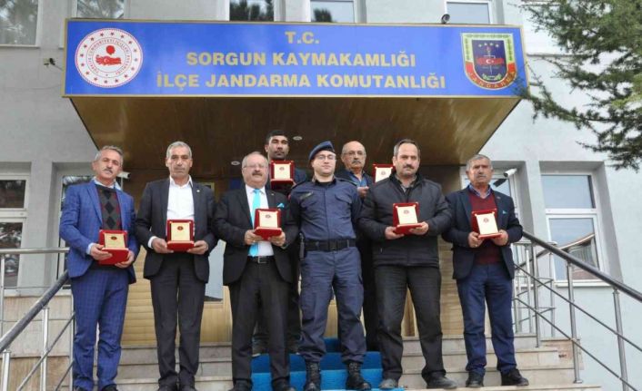 Yozgat’ın Sorgun İlçe Jandarma Komutanı Jandarma Binbaşı Dr. Alper Ekmekcioğlu, köylerine güvenlik kamerası taktıran 7 köy muhtarına plaket takdim etti.