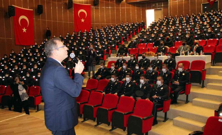 Polislik mesleğinin hukuka ve vicdana uygun bir şekilde yapılması gerektiğini söyleyen Vali Ziya Polat, yeni eğitim öğretim yılının hayırlı olmasını diledi. Vali Polat, “Öncelikle giydiğiniz üniformaya saygınız olacak ve çok seveceksiniz. Bu üniforma için gerektiğinde sizden öncekiler gibi toprağa düşmeyi şehit olmayı, o imanı, o inancı içinizde yaşayacaksınız ve yaşatacaksınız. Bu millete hizmet yolunda her zaman en önde, sahada devletin bireyleri olarak vatandaşla birebir ilişki içerisinde bu millete sevdalı bireyler olacaksınız, bu devlete sevdalı olacaksınız. Bu bayrak için bu devlet için bu millet için şehadet şerbetini içmeye gönüllü olacaksınız. Bu toplumun her kesimine yakın olmak zorundayız. Devletin emrinde milletin hizmetinde olacağız, devletin dışında hiçbir kişi ve gruptan emir almayacağız. İnşallah buradan çok iyi bir şekilde mezun olup devlete hizmet etmeye devam edeceksiniz” dedi.