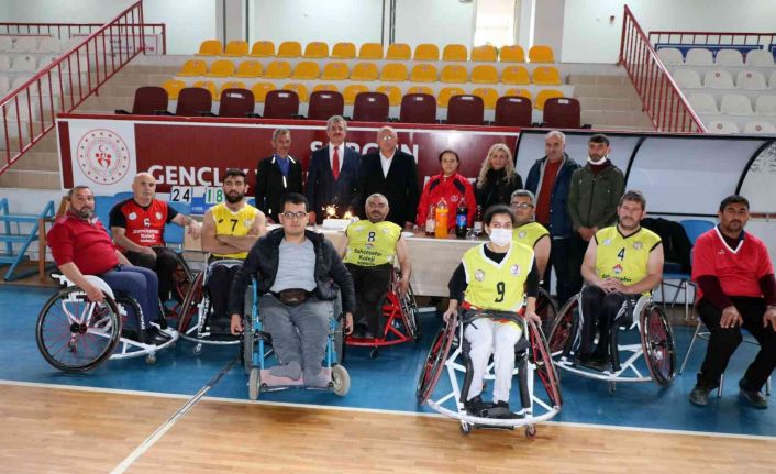 Sorgun Kapalı Spor Salonunda lig hazırlıklarını sürdüren Sorgun Engelliler Umut Spor Kulübü oyuncuları, antrenman sonrası kendilerini ziyarete gelen İlçe Milli Eğitim Müdürü Musa Öcal, Halk Eğitim Merkezi Müdürü Veysel Koçak ve usta öğreticilerin 24 Kasım öğretmenler gününü kutlayarak pasta ikramında bulundular.