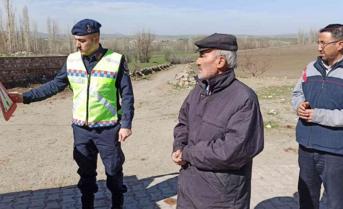 İl Jandarma Komutanlığı trafik ekipleri çiftçilere, traktör kazalarını önlemeye yönelik alınacak tedbirler ile bu tedbirler doğrultusunda görünürlüğü arttıran reflektör ve sürücünün devrilen traktörün altında kalmasını engelleyen ROPS (koruma çerçevesi) demirinin önemini anlattı.