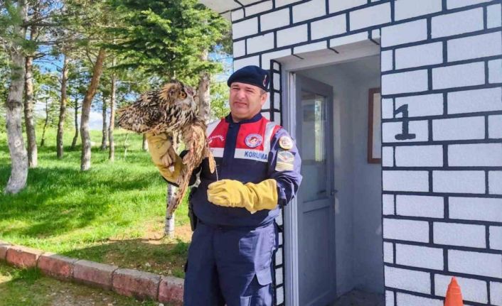 Yozgat İl Jandarma Komutanlığı Çevre Doğa ve Hayvanları Koruma Timi ekipleri, doğada yaralı halde puhu kuşu buldu.