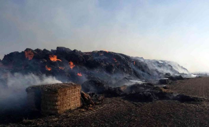 Yangında bin 500 adet saman balyası tamamen yandı.