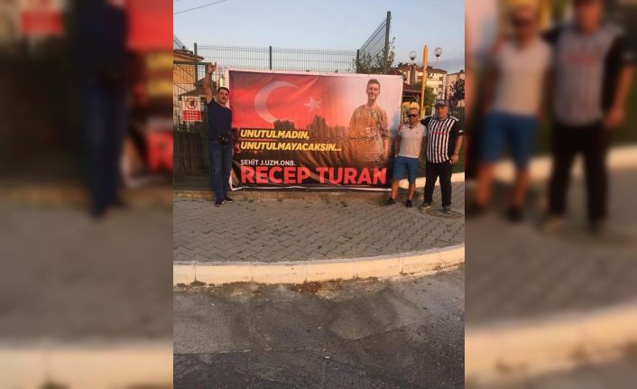 Recep Turan’ın fotoğrafını pankarta bastırarak üzerine,"Unutulmadın,unutulmayacaksın"yazısı yazarak parkartı parka astı. Alaplılı vatandaşların bu anlamlı davranışı sehidin ailesi ve akrabalardan büyük takdir aldı.
