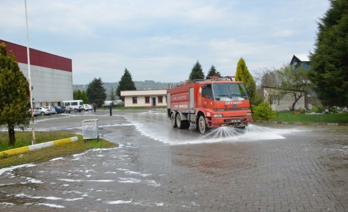 Alaplı Belediyesi tarafından korona virüs ile mücadele kapsamında ilçede faaliyet gösteren fabrikalarda dezenfekte çalışmaları yapıldı.