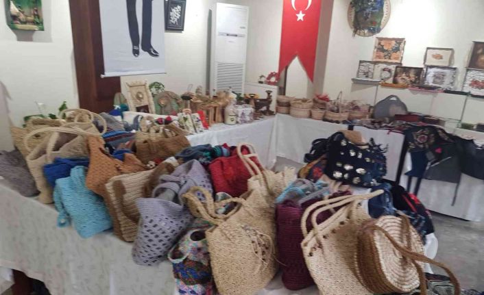 Serginin içerisinde, atık kağıt, mısır püskülü ve çeşitli atık maddelerden elde edilen çanta, bebek, yastık, tablo gibi ürünler yer aldı.