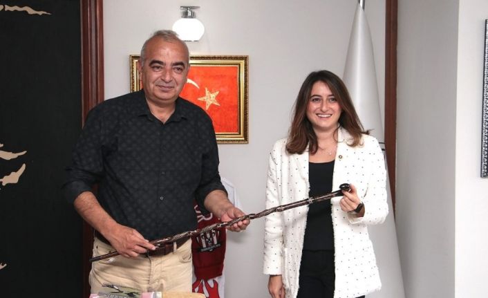 Kendilerini ziyareti nedeniyle mutlu olduğunu belirterek teşekkür eden Başkan Çetin Bozkurt, milletvekili Bankoğlu’na ziyareti anısına bir Devrek bastonu hediye etti.