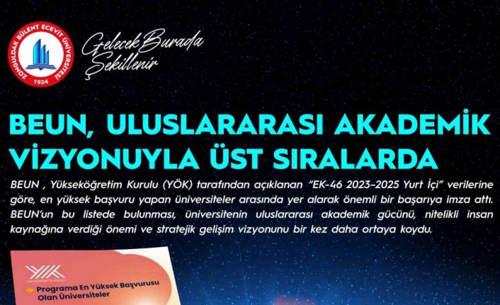 Zonguldak Bülent Ecevit Üniversitesi (BEUN), Yükseköğretim Kurulu (YÖK) tarafından açıklanan "EK-46 2023-2025 Yurt İçi" verilerine göre, en yüksek başvuru yapan üniversiteler arasında yer alarak önemli bir başarıya imza attı. BEUN’un bu listede bulunması, üniversitenin uluslararası akademik gücünü, nitelikli insan kaynağına verdiği önemi ve stratejik gelişim vizyonunu bir kez daha ortaya koydu.