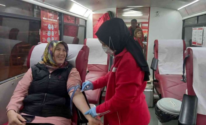 Zonguldak’ın Ereğli ilçesinde Hatip Camii’nde teravih namazı kılan cemaat, namaz sonrasında kan bağışında bulundu.