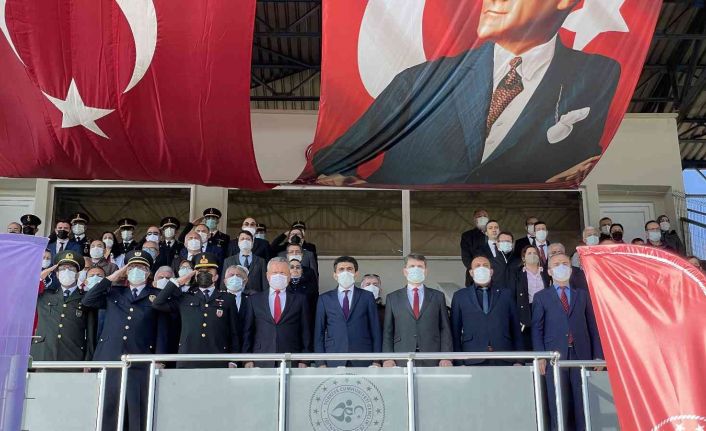 Sabah saatlerinde Kaymakamlık makamında tebrikler kabul edildi ve ardından şehir stadyumunda yapılacak olan programa geçildi. Kaymakam Muharrem Coşgun, Belediye Başkanı Bülent Kantarcı tören komutanı eşliğinde öğrencilerin ve halkın bayramını kutladı.