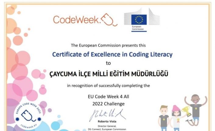 Avrupa Kod Haftası’nda yapılan etkinlik sonucu Çaycuma İlçe Milli Eğitim Müdürlüğü’ne ’Mükemmellik Sertifikası’ gönderildi.
