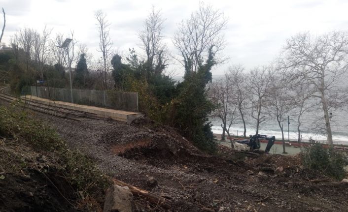 Zonguldak’ın Kapuz mevkiinde plajda yapılan çevrede düzenlemesi kapsamında çöken tren yolu için tamir etme çalışmaları başladı.
