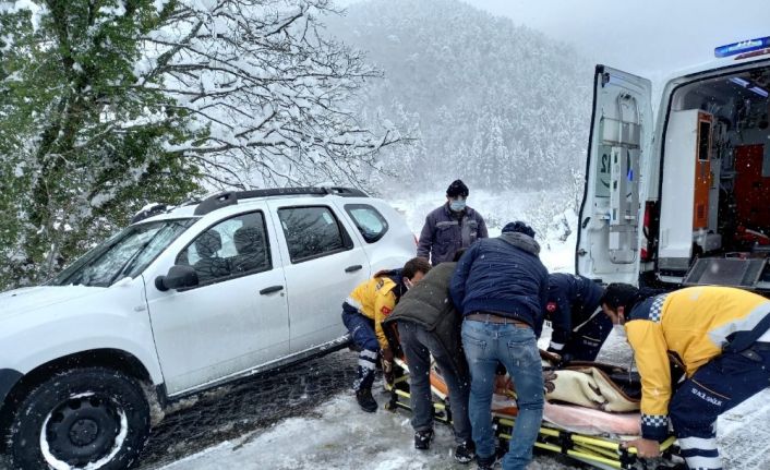 Devrekli muhtar Karaöz köyünde rahatsızlanan hastayı kendi aracıyla ambulansa teslim etti.