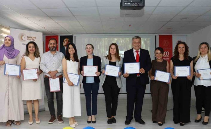 Tören sonunda ödül alan öğretmenlerle hatıra fotoğrafı çekildi.