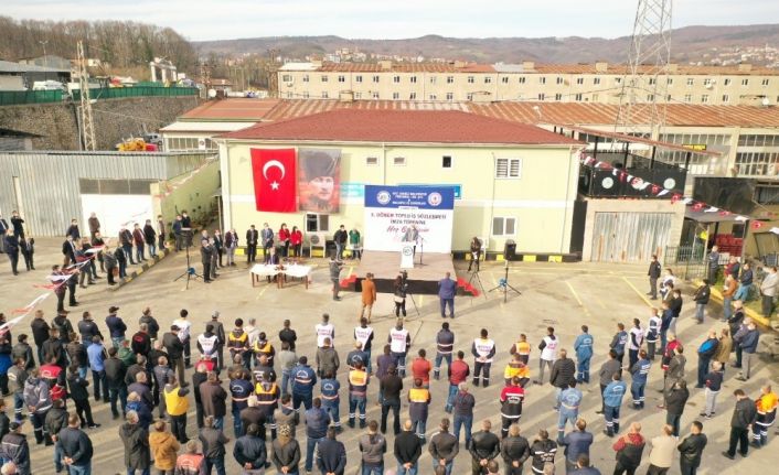Toplu Sözleşme imza töreni, Belediyenin Belen Sanayi’nde bulunan şantiyesinde gerçekleşti. Pandemi koşulları gözetilerek belediye işçilerinin iş çıkış saatinde yapılan toplu sözleşme imza töreninde Belediye İş Sendikası Zonguldak Şube Başkanı Osman Karataş, Belediye Başkanı Halil Posbıyık’a gösterdikleri özveri ve harcadıkları zaman için teşekkür etti.