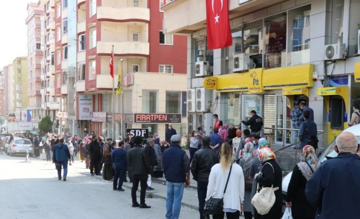 Zonguldak’ın Ereğli ilçesinde korona virüs salgını nedeniyle 4 günlük sokağa çıkma yasağı ardından vatandaşlar caddelere, sokaklara, banka ve marketlere akın etti, bin TL’lik yardım parası için PTT önünde kuyruk oluşturdu.