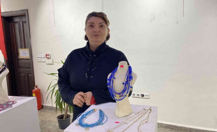Gürgeç, kolye, bileklik, tesbih ve hal hal üzerine yaptığı 400 ürünü Güzel Sanat Galerisinde halkın beğenisine sundu.