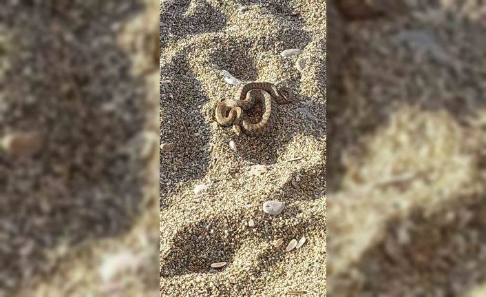 Zonguldak’ın Çaycuma ilçesi Filyos beldesi sahilinde yoğun kalabalığın olduğu zamanda kumun içinden zehirli olduğu tahmin edilen yılan çıktı. Paniğe neden olan yılan olay yerine çağrılan itfaiye ekipleri tarafından etkisiz hale getirildi.