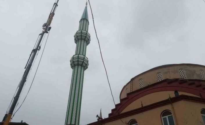 Zonguldak’ın Alaplı ilçesinde Mart ayında çıkan fırtınadan dolayı yıkılan cami minaresi hayırseverlerin desteği ile yenilendi.
