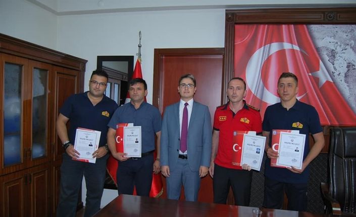 Alaplı Kaymakam Vekili Arıkan, sel felaketindeki üstün gayret ve özverili çalışmalarından dolayı başarı gösteren itfaiye personeline başarı belgesi verdi.