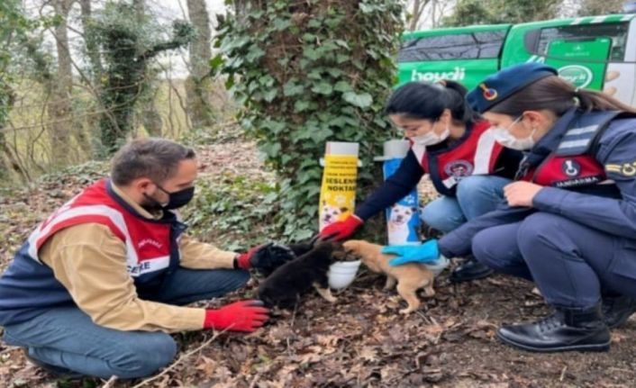 Zonguldak İl Jandarma Komutanlığı ekipleri 4 Nisan Sokak Hayvanları Gününde mama ve su kapları bıraktı.