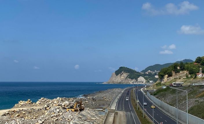 Zonguldak’ı Kilimli ilçesine bağlayan sahil yoluna 700 bin tonluk taş dolgu malzemesi kullanılırken çalışmaların 1,5 yılda tamamlanması bekleniyor.