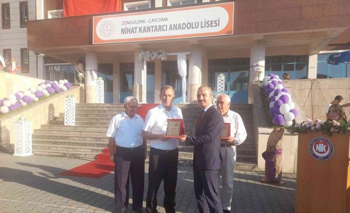 Zonguldak’ın Çaycuma ilçesinde muhtarlık yapan Recep Kabuk’ a Nihat Kantarcı Lisesi Kütüphanesi’ne kitap bağış yardımında bulunmasından dolayı plaket verildi.