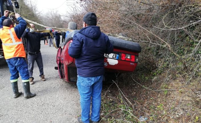 Zonguldak’ın Çaycuma ilçesine kontrolden çıkan otomobilin takla attığı kazada sürücü hafif şekilde yaralandı.
