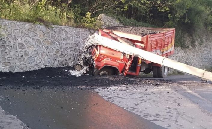 Zonguldak’ta kontrolden çıkan kamyonet beton elektrik direğine çarptı. Kazada sürücü hafif şekilde yaralandı.