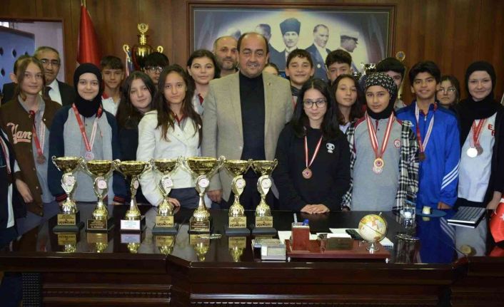 Zonguldak’ın Ereğli ilçesine bağlı Gülüç beldesinde ki Vesile Dikmen ortaokulu öğrencileri kazandıkları madalya ve kupalarla Gülüç Belediye Başkanı Gökhan Mustafa Demirtaş’ı ziyaret ederek destekleri için teşekkür etti.