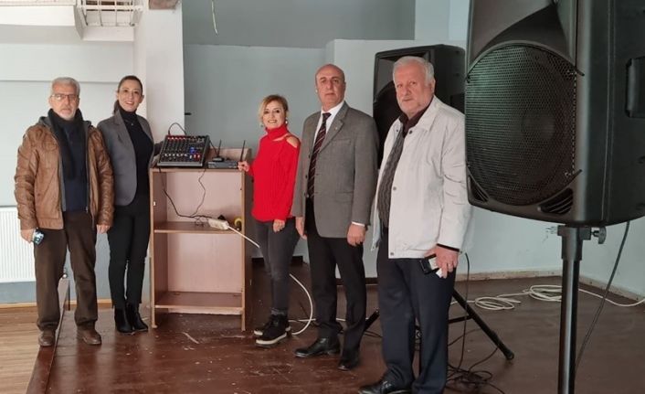 Ticaret Lisesi Mezunlar Derneği yeni ve eski yönetimi başlattıkları bağış kampanyası ile okullarına ses sistemi hediye ettiler.