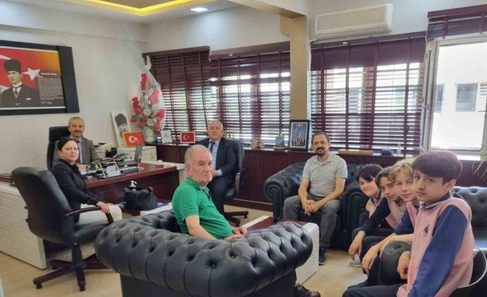 Öğrencileri, öğretmenleri ve okul idarecilerini makamında kabul eden Milli Eğitim Müdürü Baş, Mimar Sinan Ortaokulu öğrencilerine ve emeği geçen öğretmenleri tebrik ederek, başarılarının devamını diledi.