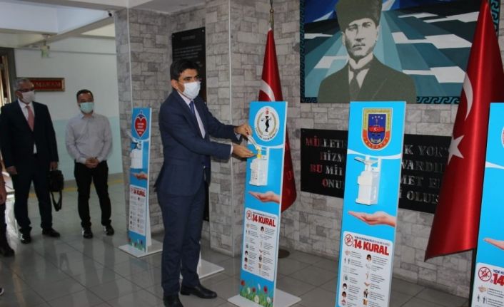 Zonguldak’ın Çaycuma ilçesinde Çaycuma Mesleki ve Teknik Anadolu Lisesi tarafından üretilen ayaklı el dezenfektan standı kamu kurumlarına hediye edildi.