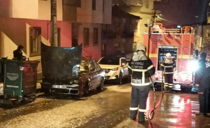 Zonguldak’ın Ereğli ilçesinde park halindeki otomobilin motor kısmı sürücüsü çalıştırmak istediği sırada yandı.