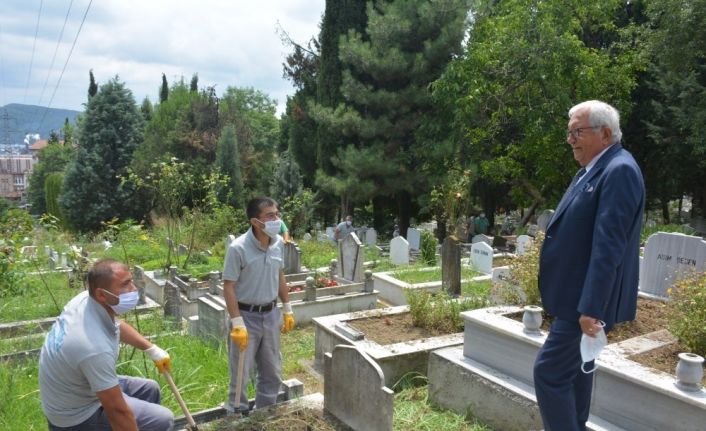 Belediye Başkanı Halil Posbıyık, mezarlıklarda çapa işlerini yapan Temizlik İşleri Müdürlüğü çalışanlarını ziyaret ederek ‘Emekleriniz için teşekkür ediyorum. Arife gününe kadar bu çalışmaları tamamlayarak önemli bir hizmeti daha yerine getirmiş olacağız” dedi.